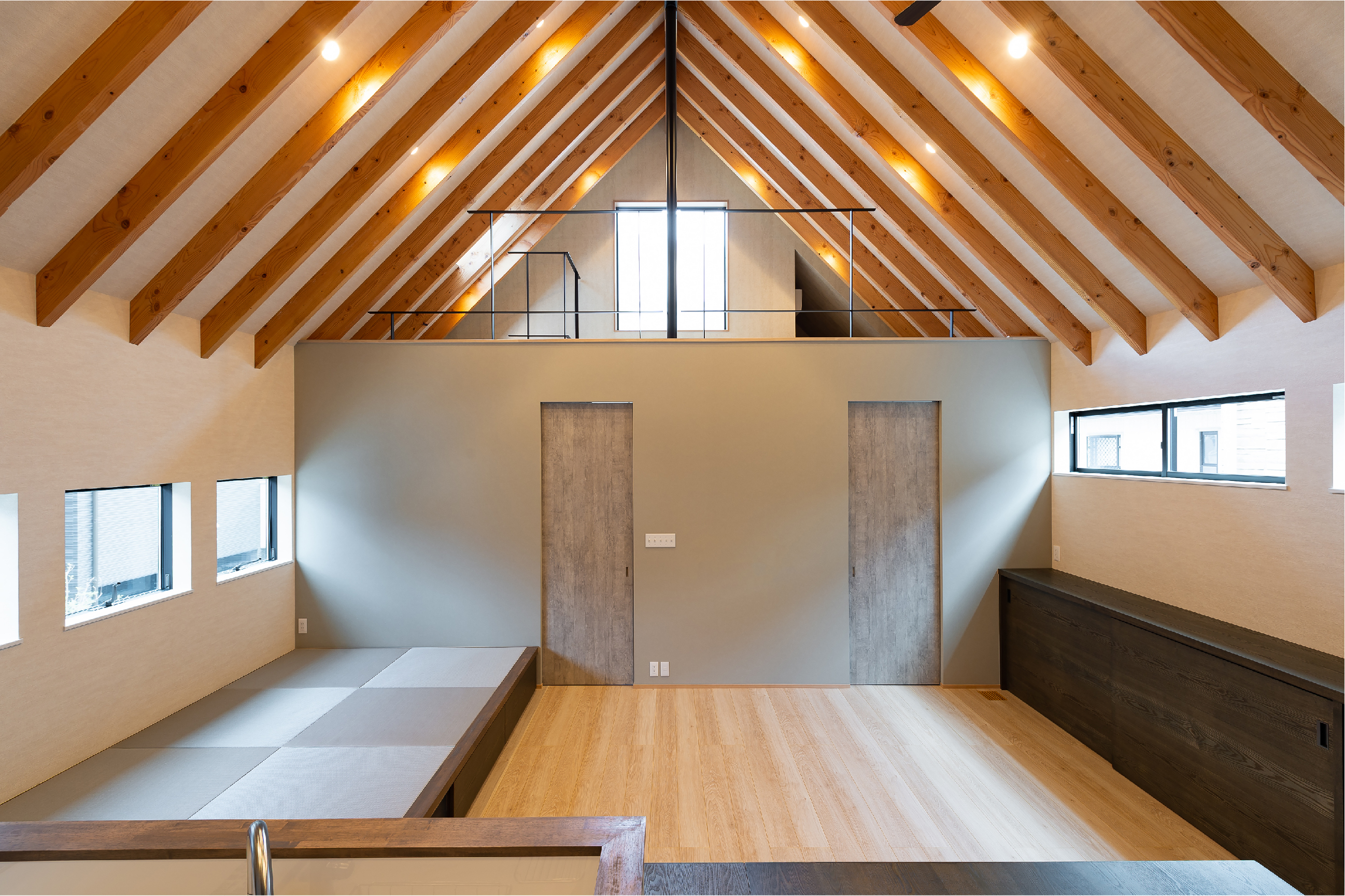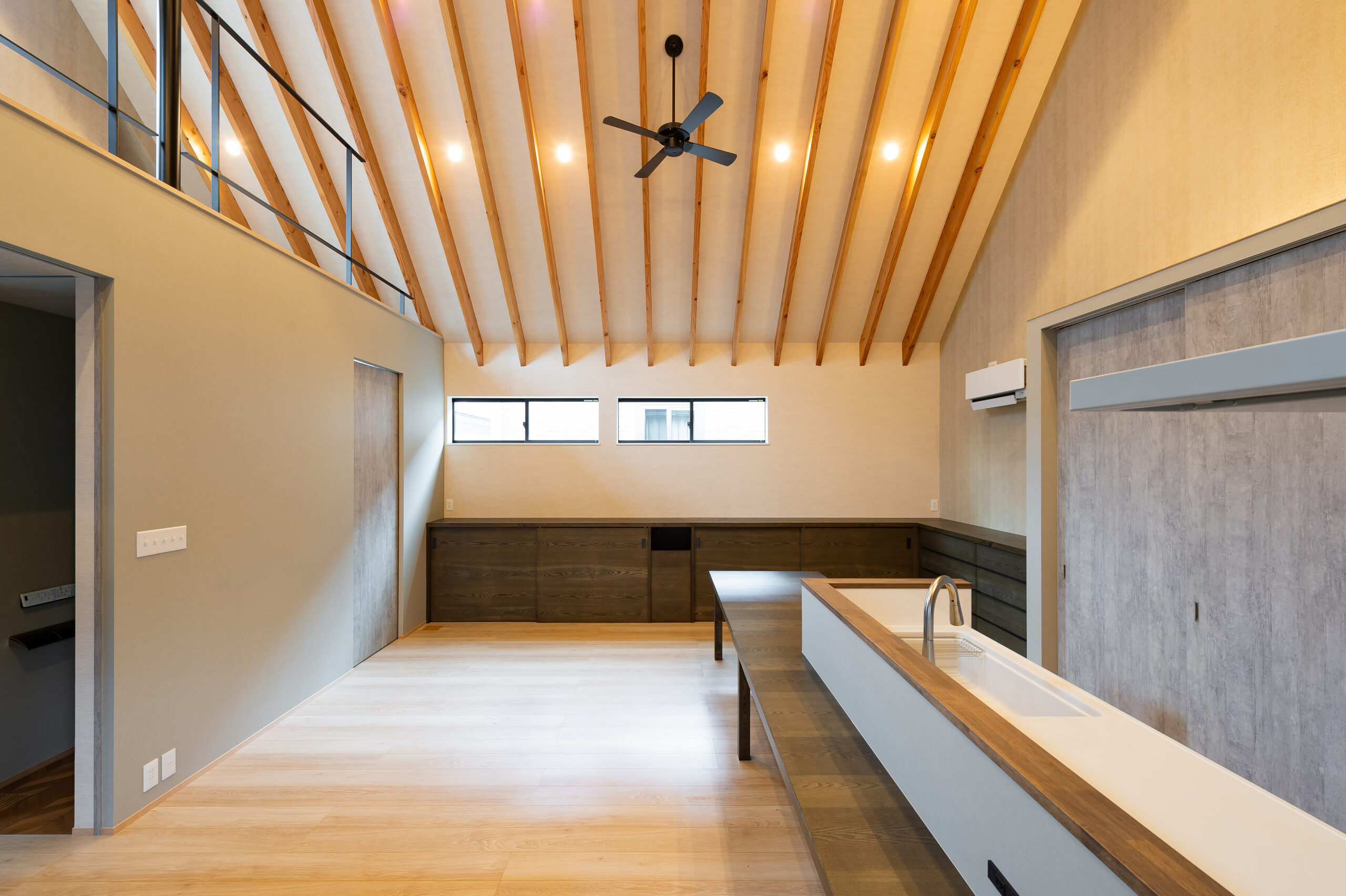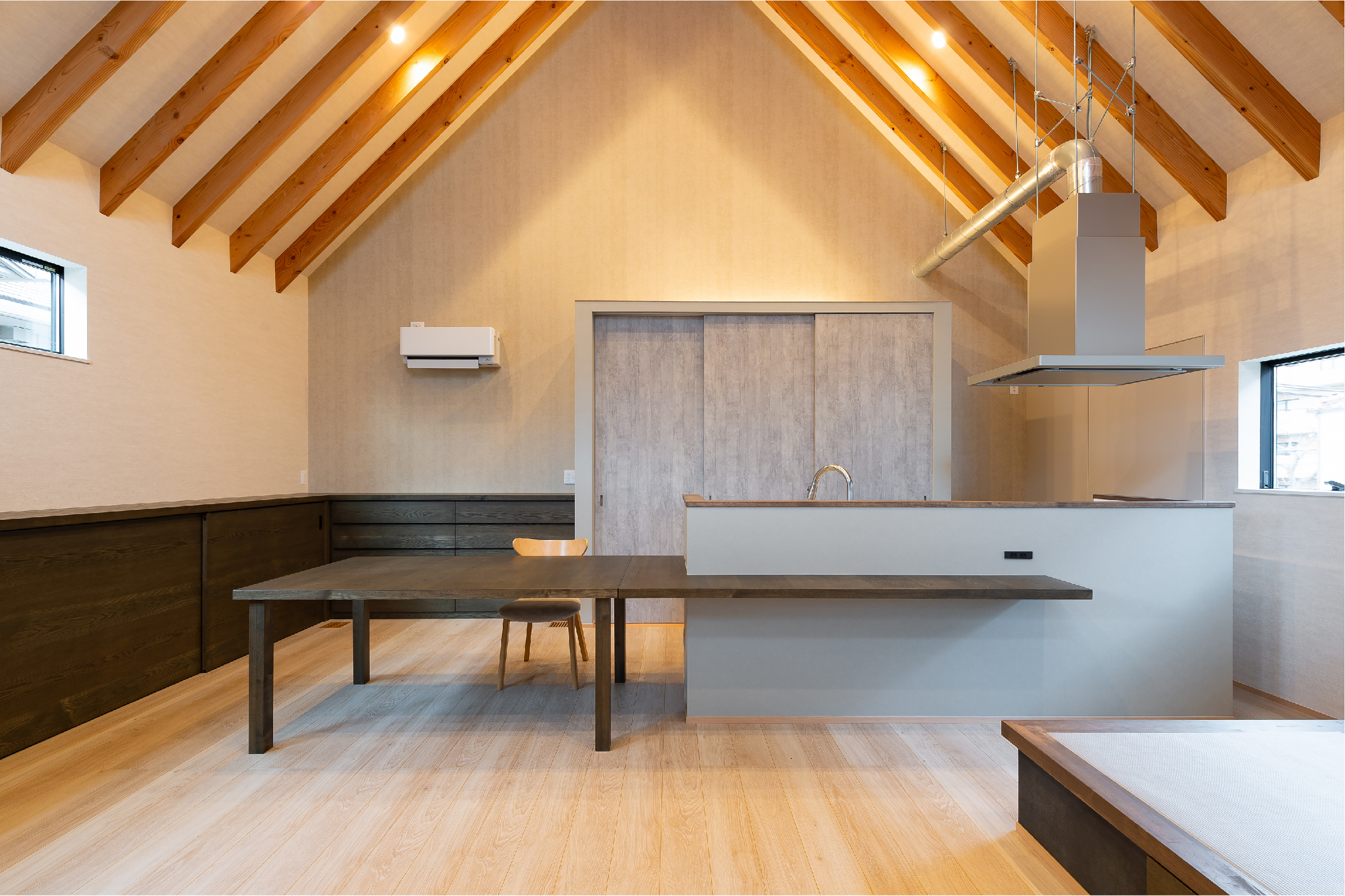 構造を活かした大空間のリビングと、快適な温熱環境を実現する高い住宅性能と意匠の両立を実現し、居心地の良い空間を。