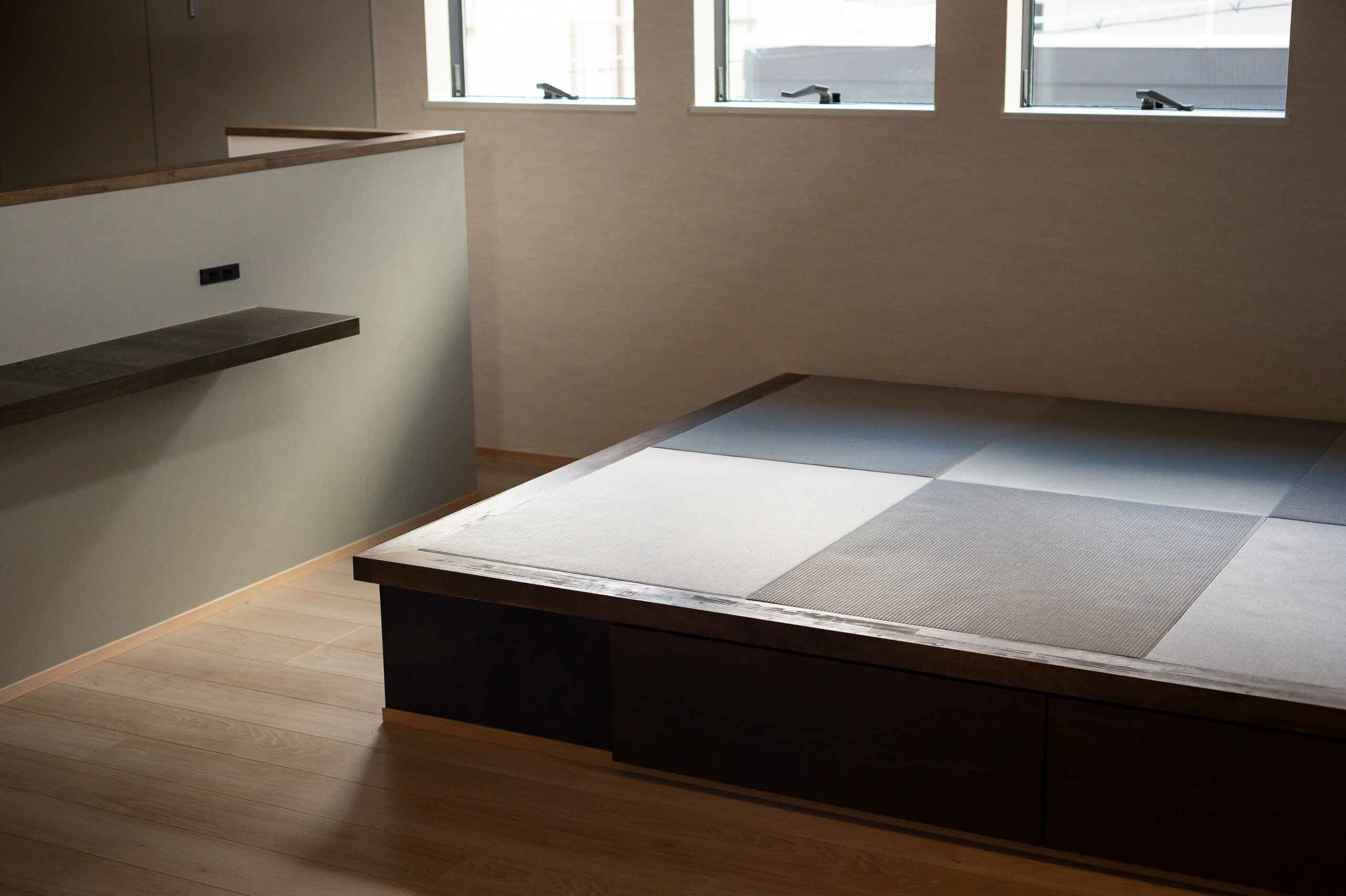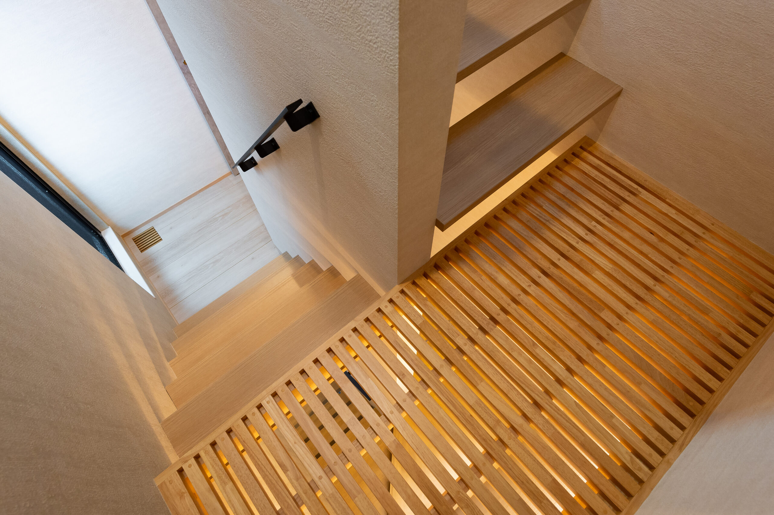施工事例 日時計の住まい 日時計の住まい 間取り木造3階建て 家族構成5人家族 建物面積1F:49.00㎡ 2F:48.73㎡ 3F:15.04㎡ 建築年月日R2年2月 家族が集まるリビング空間に拘った一邸。 屋根の形を内側にも現した勾配天井のリビングは 赤松の梁がおおらかに包みこむあたたかい暮らしの居場所。 窓から差し込む日の光は、 影を生み、刻々と移ろう時を知らせる。 作り出される陰影が、日常に彩りを添える、日時計の住まい。 構造を活かした大空間のリビングと、快適な温熱環境を実現する高い住宅性能と意匠の両立を実現し、居心地の良い空間を。